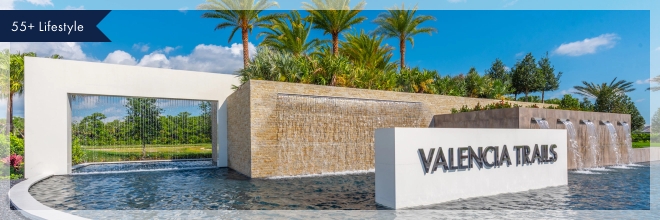 Exemplifying the best of 55+ living, the gorgeous contemporary single-family homes at Valencia Trails offer the ultimate in style, convenience, and luxury. Spacious living areas perfect for entertaining, impressive gourmet kitchens with stainless steel and gas appliances, and screened and covered patios for enjoying Florida’s beautiful weather year-round are just some of the highlights that define these stylish single-story homes. Come home to luxurious standard features like rich stone exterior finishes, tile roof, brick pavers and so much more.