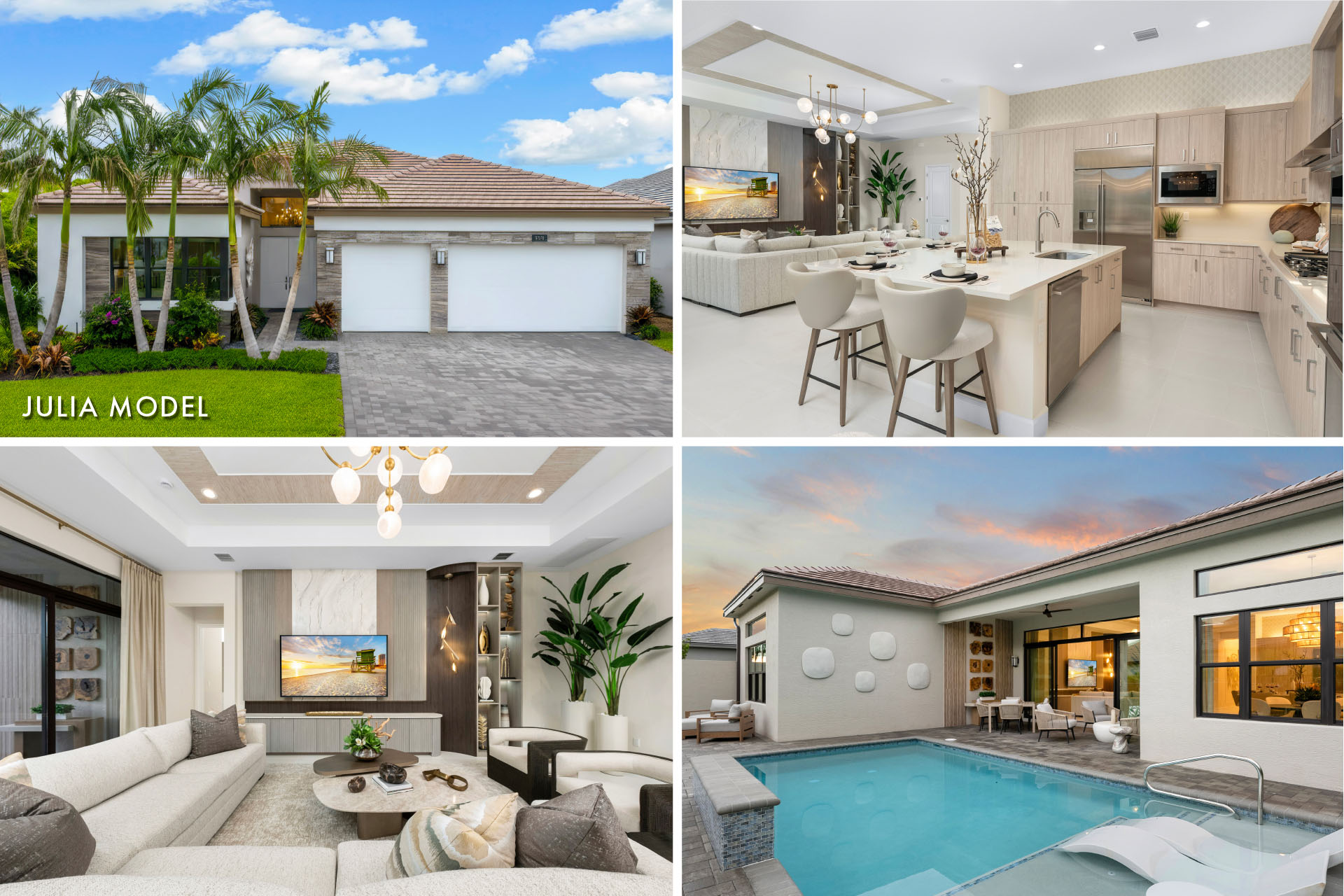 Join us next weekend and be among the first to see our four gorgeous new model homes in Boynton Beach! Tour the all-new Barbados, Julia, Kendall, and Addison models and see firsthand the modern design and sophisticated finishes. Each home is thoughtfully decorated with designer touches that elevate every space, offering a glimpse into the luxurious 55+ lifestyle that awaits you at Valencia Del Mar.
