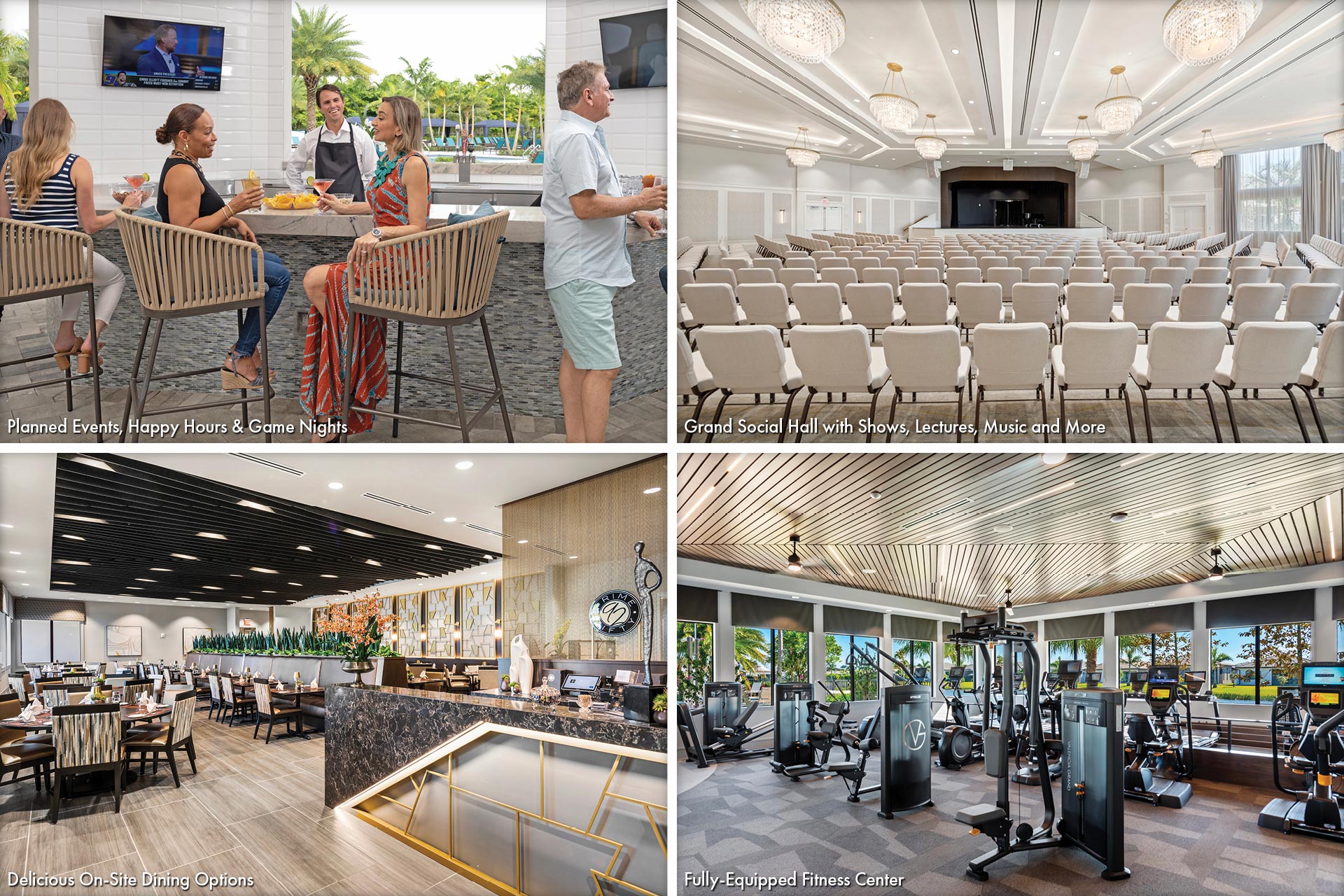 The Clubhouse at Valencia Grand is open, and residents have been loving this gorgeous facility! The 55+ lifestyle is in full swing with events, socials, happy hours, and game nights, all planned by the full-time Lifestyle Director. The grand social hall hosts Broadway-style shows, lectures, live music, and so much more. If you're looking for gourmet dining without leaving your community, then the Valencia Grand has you covered. You'll find a wide variety of delicious options at Encore Restaurant & Bar and Cheers! Patio Bar overlooking the resort-style pools. For fitness enthusiasts, the fully-equipped fitness center and exercise studio are the places to be. Outside, you'll find the yoga garden, tennis and pickleball courts, and Pro Shop! If you prefer to relax, then look no further than the Mind & Body Spa with nail salon, blow dry bar, treatment rooms, and steam rooms. You can relax at the resort-style pool and whirlpool spa or exercise in the lap and resistance pools. No matter what you're looking for, Valencia Grand has the world-class amenities you're looking for!